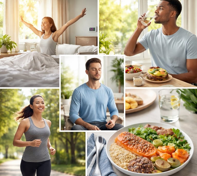 Midday routine: a 20–30 minute moderate-intensity session (brisk walk, cycling, or bodyweight circuit).